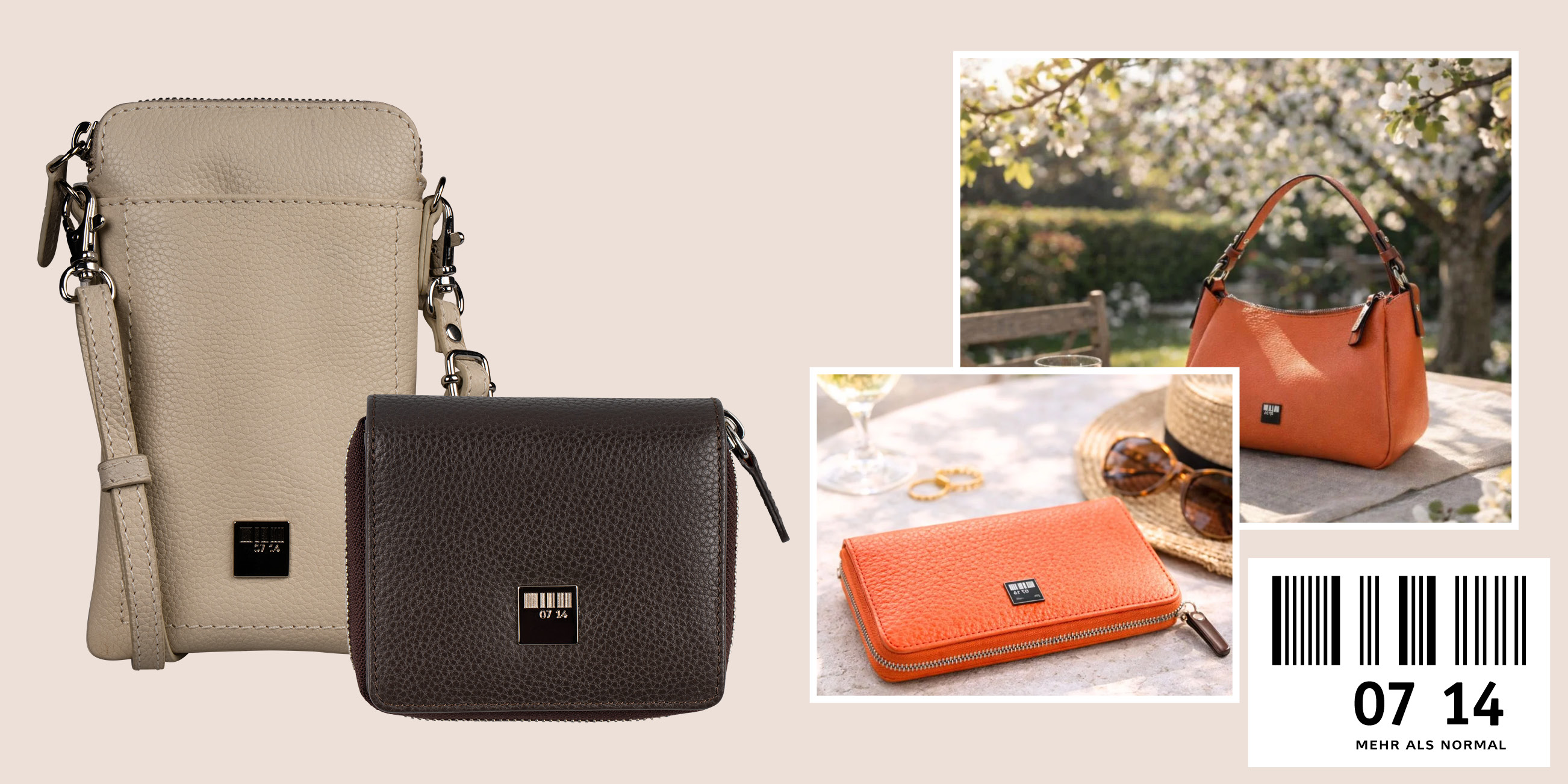 Vier neue Linien definieren die aktuelle Saison – von mediterran inspirierter Struktur bis hin zu weicher, moderner Silhouette. Ergänzt werden sie durch die Signature Collections von 07 14, die in ausgewählten Farben neu interpretiert wurden. Ob als eleganter Begleiter für den Alltag oder als stilvolles Statement: Die Taschen von 07 14 verbinden Design, Qualität und Funktion auf besonders harmonische Weise.